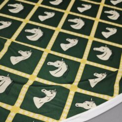 Vpadljiva zeleno-rumena barvna kombinacija poskrbi, da je vsak kos takoj opazen, motiv konja pa doda energijo, gibanje in modni “wow” efekt.