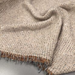 Zlato-bež,boucle z gostoto 290 g/m² ima značilno teksturo in je idealen za izdelavo elegantnih oblačil, kot so plašči, jakne ali modni dodatki. Zasnovan za prefinjen videz, bo ta material dodal vašim kreacijam barvit in sofisticiran pridih.
