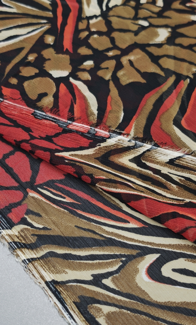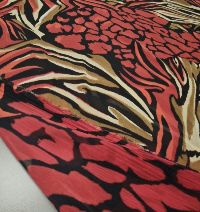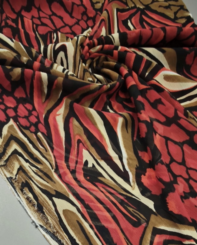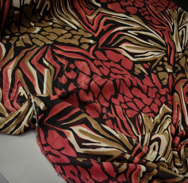 Žoržet z rdeče-črno-rjavim animal vzorcem – eksotična lahkotnost